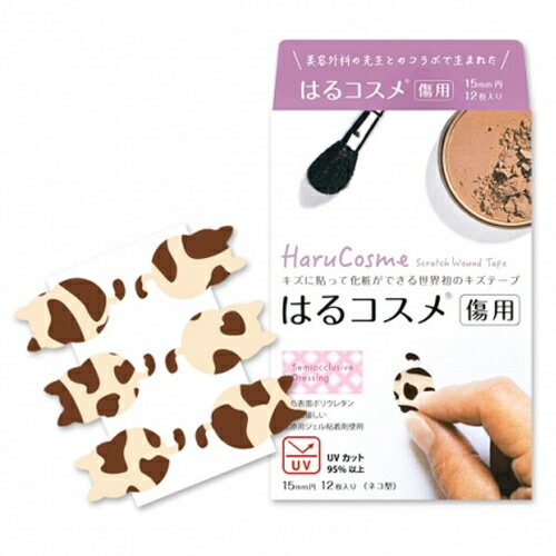 ※ゆうパケット送料無料※ 『はるコスメ 傷用 ( 15mm 円 ネコ型 ) 12枚入り』