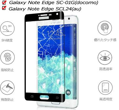 docomo SC-01G au SCL24 Galaxy Note Edge対応 3D ガラスフィルム フルカバー 透明9H超硬質自動吸着 高光沢 ブラック ガラスフィルム ★
