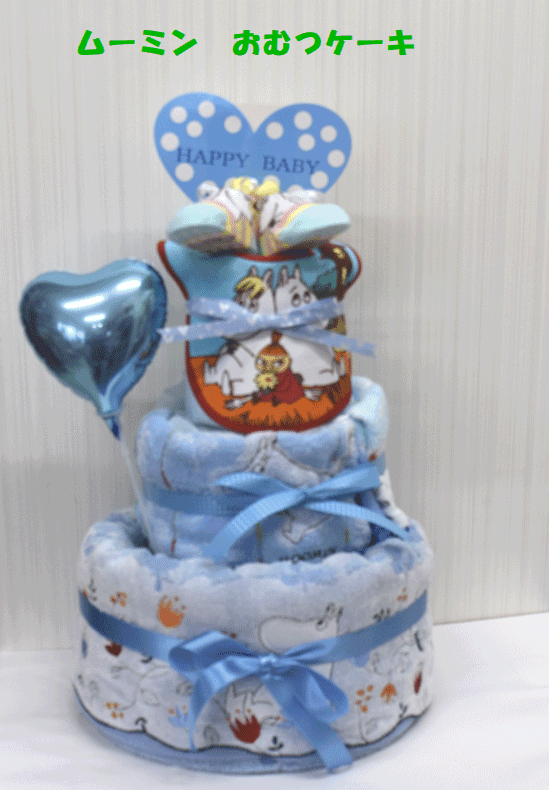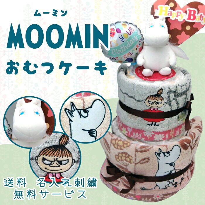 【送料無料サービス地域 関東〜九州】ムーミン 名入れ おむつケーキ●名入れタオル・おもちゃ+オムツケーキダイパーケーキ【キャラクター】出産祝い 業界最大級 新登場