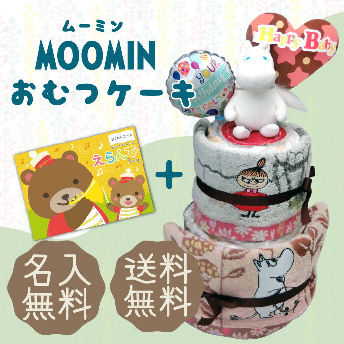 【送料無料サービス地域 関東〜九州】ムーミン おむつケーキ+出産祝い専用カタログギフト●名入れタオル+おもちゃ+オムツケーキ+『えらんで』セット【キャラクター】名入れ時【代引不可】