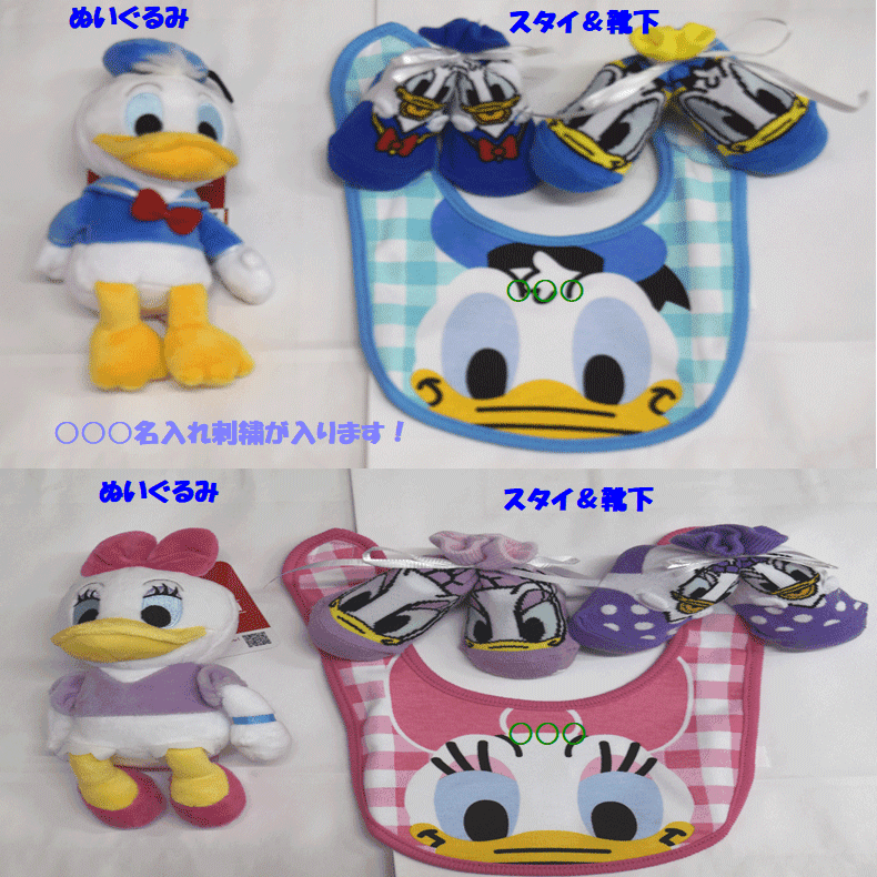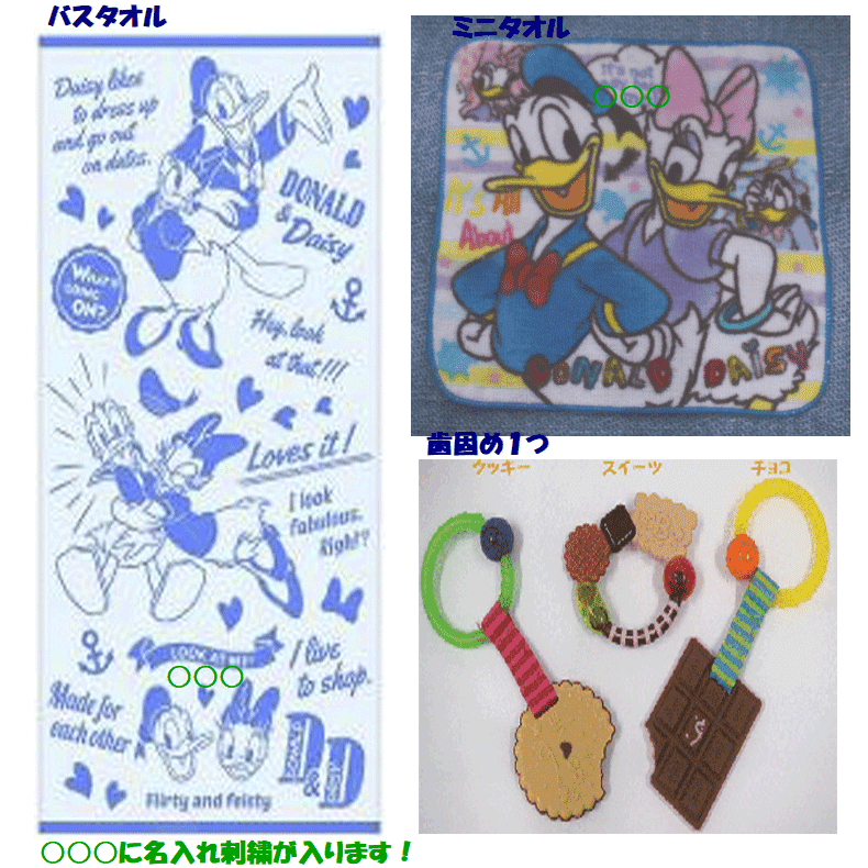 大人気のDisney(ディズニー)からドナルド、デイジーのおむつケーキです!! ミニタオル1枚には名入れ無料です。