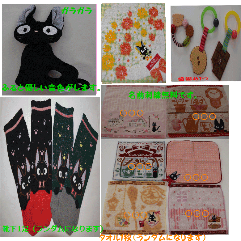 人気の魔女の宅急便からジジのおむつケーキです!! タオル1枚、ジジのガラガラ、靴下1足 がついたおむつケーキです!! タオル1枚には名入れ無料です。