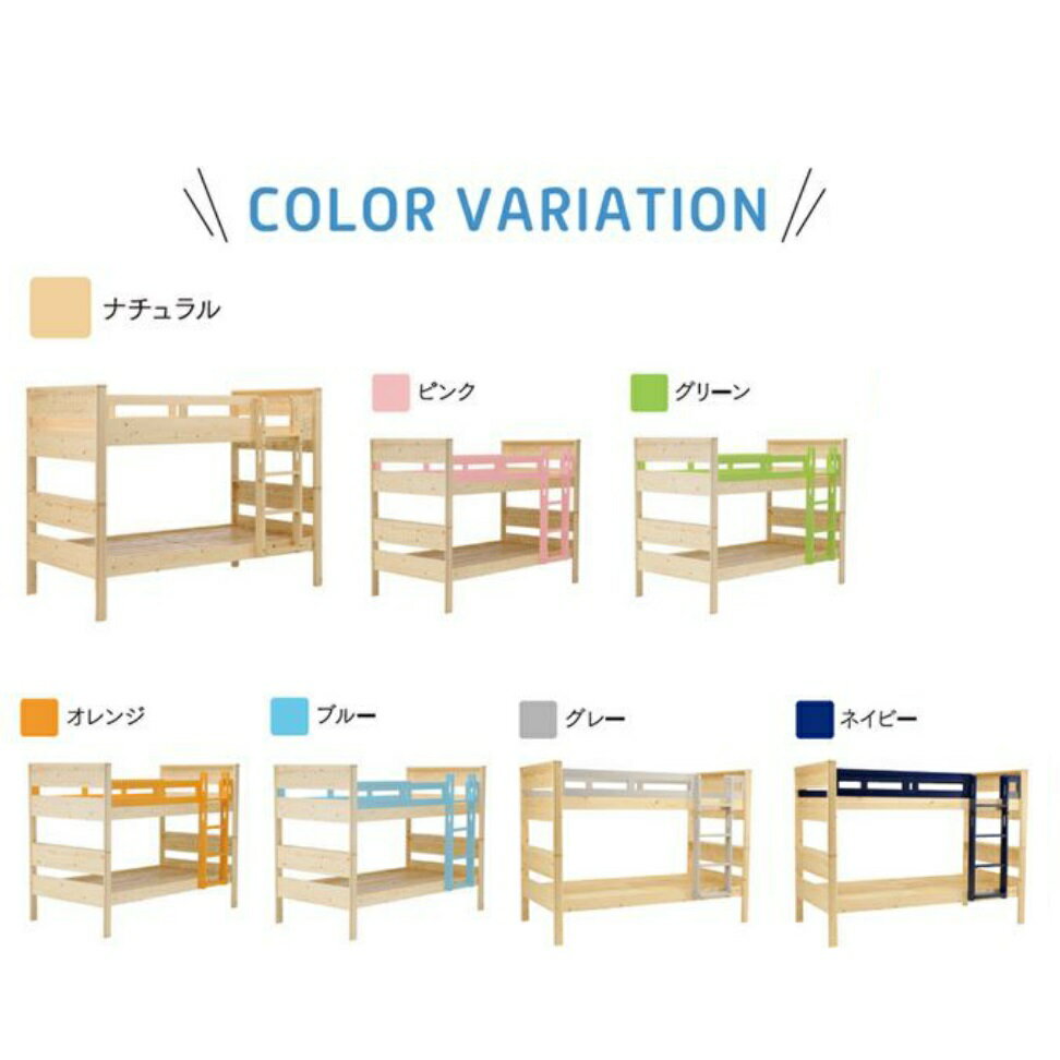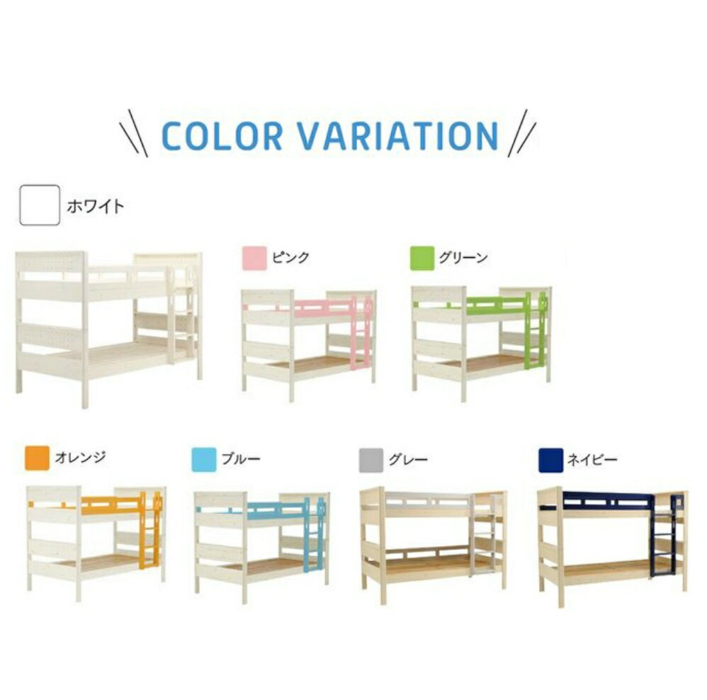 商品説明サイズ2段ベッド ヒュッテ W1161mm×D2050mm×H1550mm ベッド内寸:W970mm×D1980mm 25才オプション下段サイドガードW1980mm×D30mm×H200mm 0.6才シェルフ(大)W739mm×D150mm×H196mm 0.8才シェルフ(小)W319mm×D150mm×H196mm 0.5才引出し2個セットW460mm×D550mm×H275mm(1個) 5才シェルフボードW357mm×D120mm×H89mm 0.2才フック2個セットφ50mm×D50mm(1個) 0.4才材質主材:パイン無垢床板:桐スノコ塗装:ウレタン塗装 色本体:2色対応:ナチュラル色/ホワイト色サイドフレーム、ハシゴ8色対応ホワイト、ピンク、オレンジ、グリーン、ブルー、ナチュラル、グレー、ネイビー商品説明パイン無垢材を使った優しいデザインの家具。