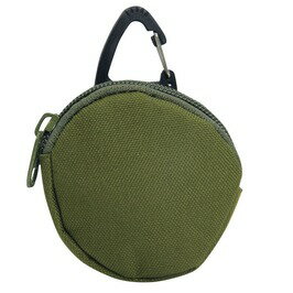 【イヤホンポーチ 丸型 カラビナ付き ナイロン製 [ グリーン ]】ミリタリーテイストなデザインが特徴のイヤホンポーチです。