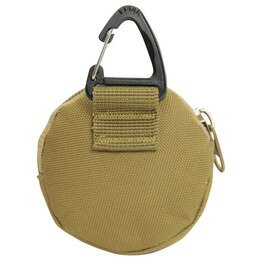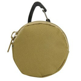 【イヤホンポーチ 丸型 カラビナ付き ナイロン製 [ タン ]】ミリタリーテイストなデザインが特徴のイヤホンポーチです。