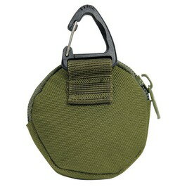 【イヤホンポーチ 丸型 カラビナ付き ナイロン製 [ グリーン ]】ミリタリーテイストなデザインが特徴のイヤホンポーチです。