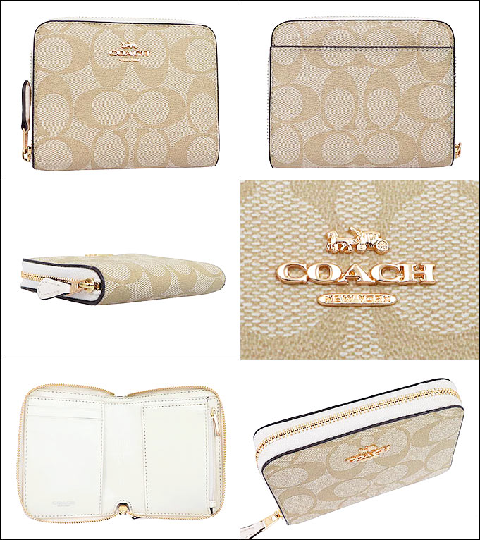 財布(二つ折り財布)F30308 30308 ライトカーキ×チョーク シグネチャー PVC レザー スモール ジップ アラウンド ウォレット アウトレット品 ※商品画像はデジカメによる撮影の為、実際の色と若干異なる場合がございます。