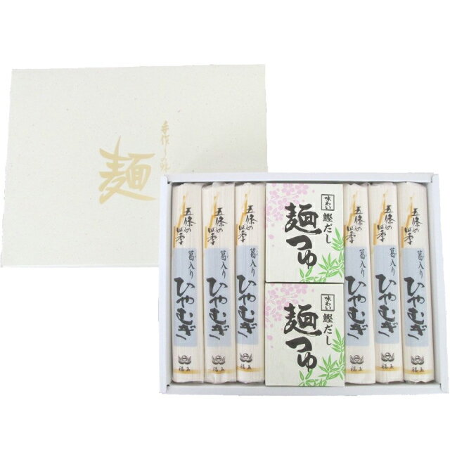 こちらは化粧箱・250g×6把入り・つゆ付きの【葛入りひやむぎ】の乾麺ギフトです。